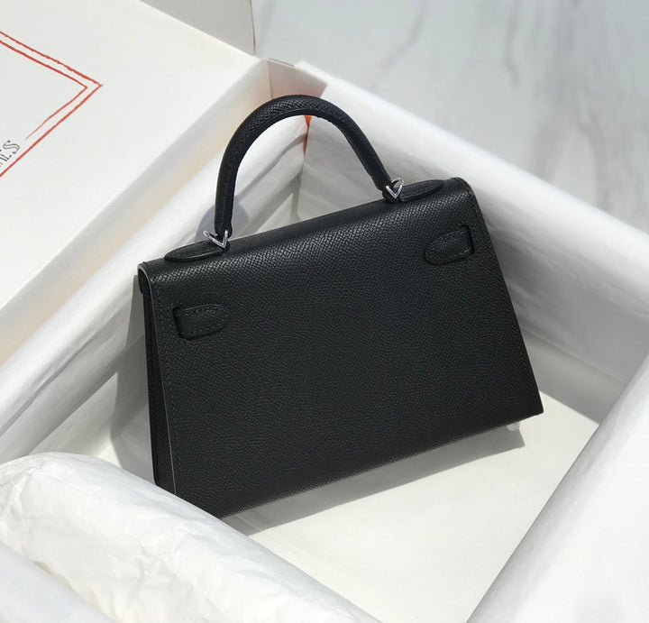 HM KELLY MINI 20 BLACK EPSOM SILVER HARDWARE