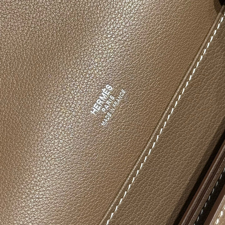 HM ROULIS 18 MINI BAG IN DARK BROWN CALFSKIN SILVER-TONE HARDWARE