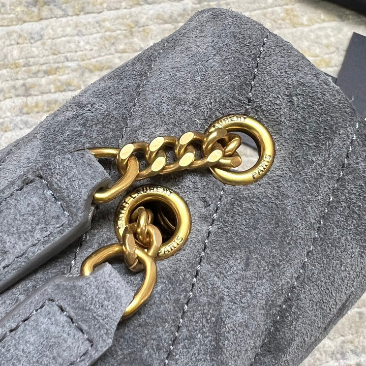 LOULOU SMALL 23 IN GRAY SUEDE GOLD HARDWARE