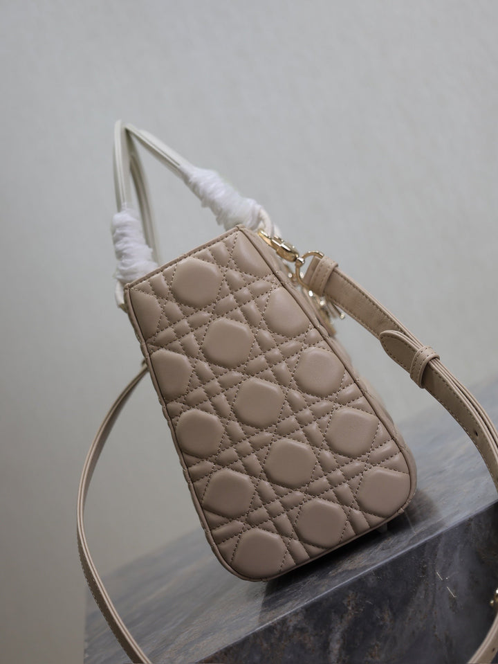 MEDIUM LADY BAG 24 IN POWDER BEIGE QUILTED MACROCANNAGE CALFSKIN METAL CHARM