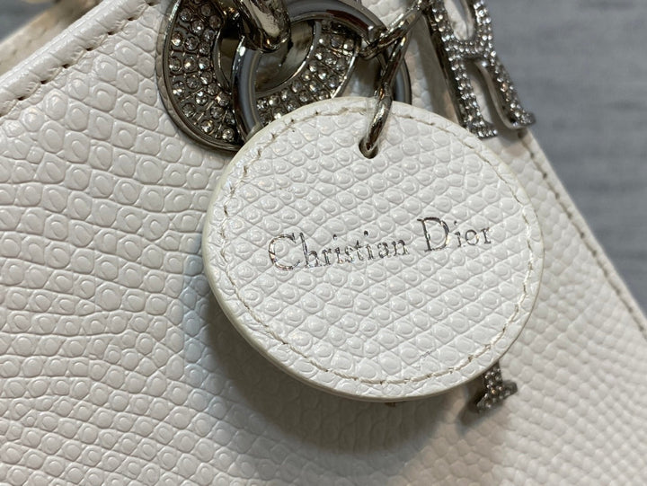 MINI LADY 17 BAG IN WHITE EMBOSSED LAMBSKIN WITH SILVER CLASP